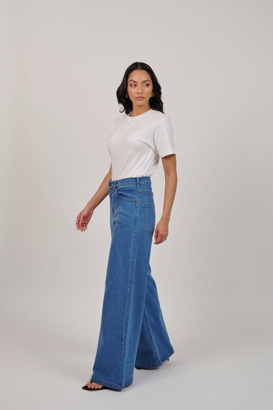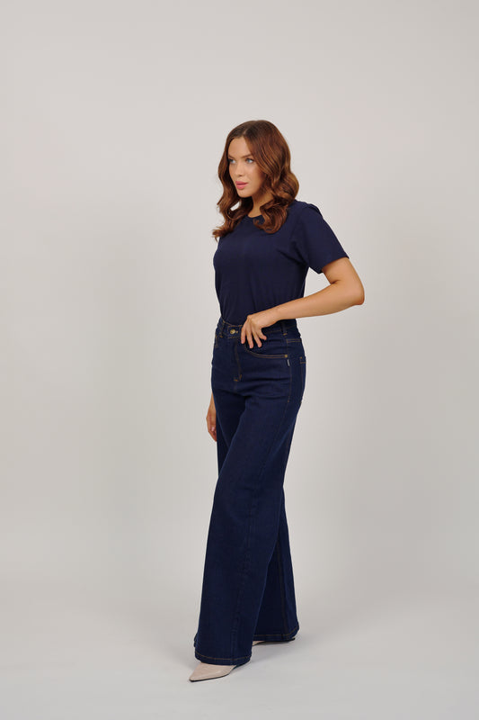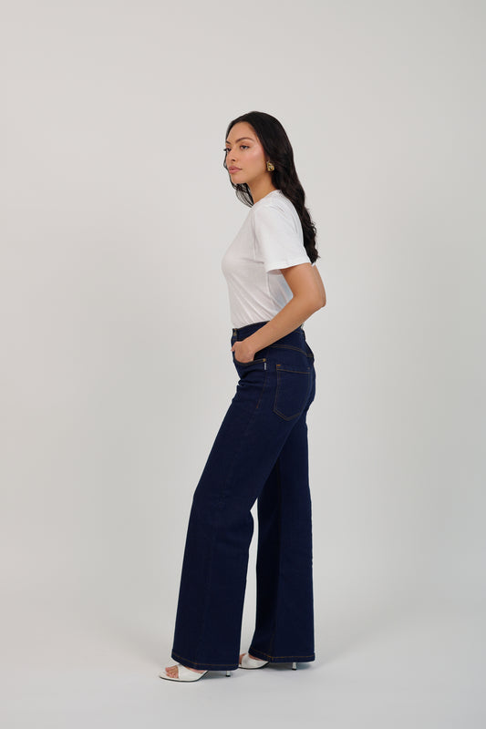 Midnight Power Wide Leg Jeans â Button-Back Edition